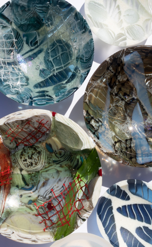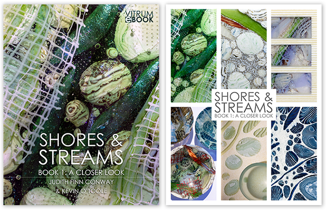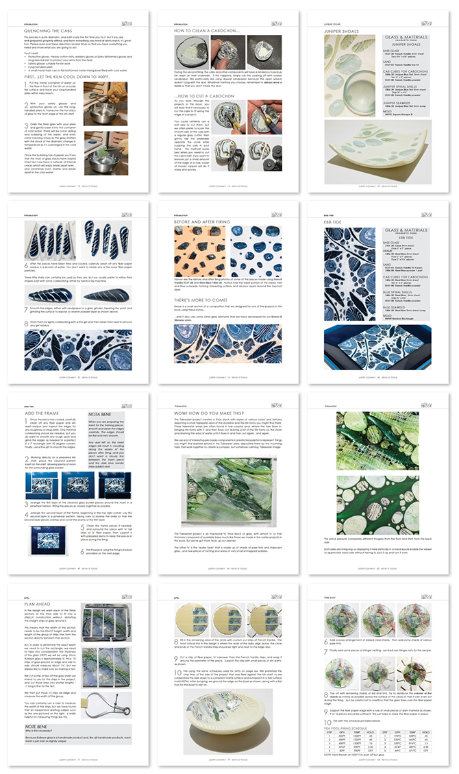 This, the first book in a new Vitrum Studio eBook series, examines in close detail the environments of everyday streams and waterways. We illustrate and explain methods for creating the pebbles, seaweeds, shells and scraps of netting and the waters they inhabit using just sheet glass, frits, and powders. We then delve into increasingly complex ways of incorporating these elements into unique glass compositions that embody the essence of shorelines and streambeds. Some pieces revel in the beauty of what’s left behind when the tide recedes while others plum the watery depths in a complex multilayered block. |